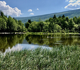 The river is hydroelectrically regulated, and is roughly 3,5 km long, and although relatively short consists of many good holes. The water levels here can vary widely throughout the season. The vegetation along the river consists mostly of birch and pine, with small portions of agricultural land.