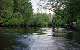 Søndre Rena stretches from the outlet of Storsjøen (Storsjødammen) to the Rena’s confluence with the Glomma, flowing for roughly 30 km before the rivers meet. Roughly 6 km upstream from the confluence you will find the Løpsjøen Dam and power station. Løpsjøen is a roughly 5 km long reservoir. On the upper stretch of Søndre Rena you will find the fly fishing zone, which is roughly 5 km long, and here only classic fly fishing is allowed, in which the line provides the weight necessary for casting.