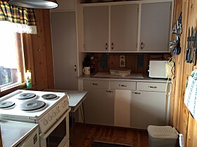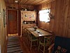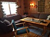 The cabin consists of a kitching with a washing machine, refrigerator, freezer, oven, coffee machine, microwave, and everything else that you might find necessary in the kitchin. The living room/dining room has a TV, and there are 3 bedrooms (2 with bunk beds and one with a double bed). The cabin has running water and electricity.