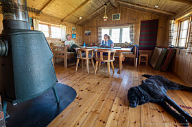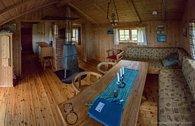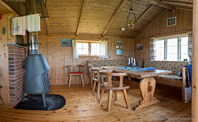 In the cabin you will find accommodation for up to 5 guests. Bring your sleeping bag. Water can be found in the well, cooking is done with propane, heat is provided by the woodstove, and you will find an outhouse at the cabin. Dogs are allowed. The distance from the road is roughly 4.5 km (a 1 hour hike), and the distance from the parking lot to the nearest town is 8 km.