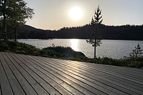 Ufsbu is a hidden gem in a fantastic area for hiking trips. The cabin is surrounded by lakes and is an eldorado for those interested in fishing, hunting, and other outdoor activities. There is a canoe, a boat, and life jackets at the cabin. Here you will find many lakes within walking distance, and fish around 500 grams are common.